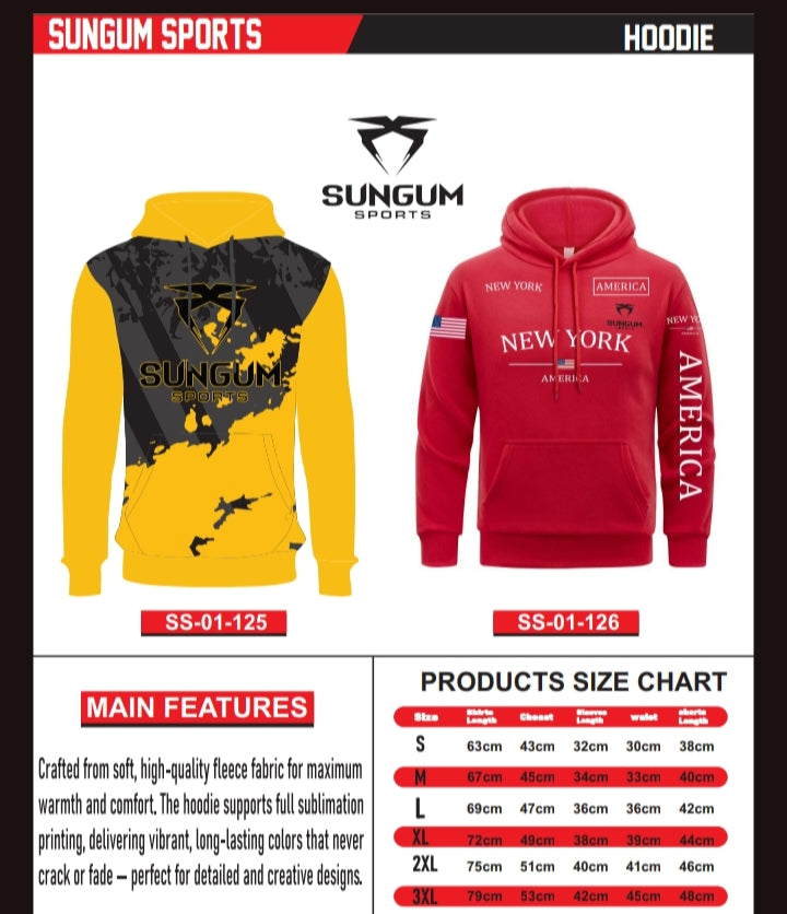 Stay warm and stylish with the Sungum Sports Premium Hoodie, crafted for everyday comfort and athletic appeal. Made with soft, breathable, and durable fabric, this hoodie is perfect for training, casual wear, travel, or street style.
